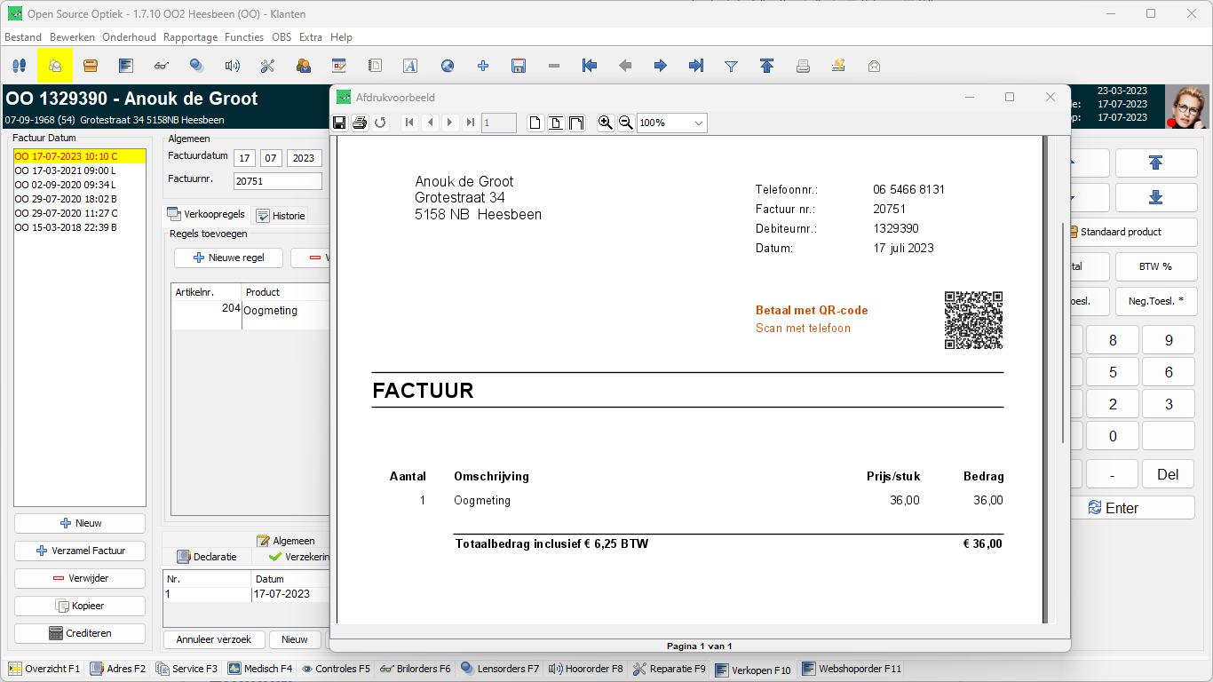 Als u een factuur afdrukt wordt er automatisch een betaalverzoek aangevraagd voor het openstaande bedrag en staat deze als QR-code op de factuur.